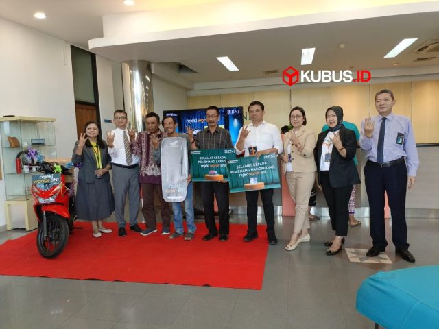 KUBUS.ID – PT Bank Negara Indonesia (Persero) Tbk atau BNI hari ini resmi membagikan hadiah kepada para pemenang tahap pertama program undian Rejeki Wondr BNI, yang digelar di BNI Kantor Cabang Kediri Jalan Brawijaya Kota Kediri. Tiga pemenang program undian Rejeki Wondr BNI KC Kediri yakni Endro Purwandi mendapatkan hadiah samsung S24fe, Diftia Ayu Oktaviani mendapatkan laptop lenovo, dan Basuki mendapatkan hadiah sepeda motor honda beat. Hadiah sepeda motor untuk Nasabah BNI KC Kediri diserahkan langsung oleh Rahmanto, Area Head 3 Kantor Wilayah 18 Malang.