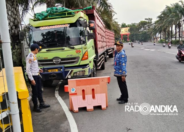 Staf Bagian Admin Sistem Informasi Dishub Kabupaten Kediri, Luhur Darma, menjelaskan bahwa hari ini pihaknya menertibkan sebuah truk gandeng yang berhenti sembarangan dan ditinggalkan oleh sopirnya di jalur tersebut.