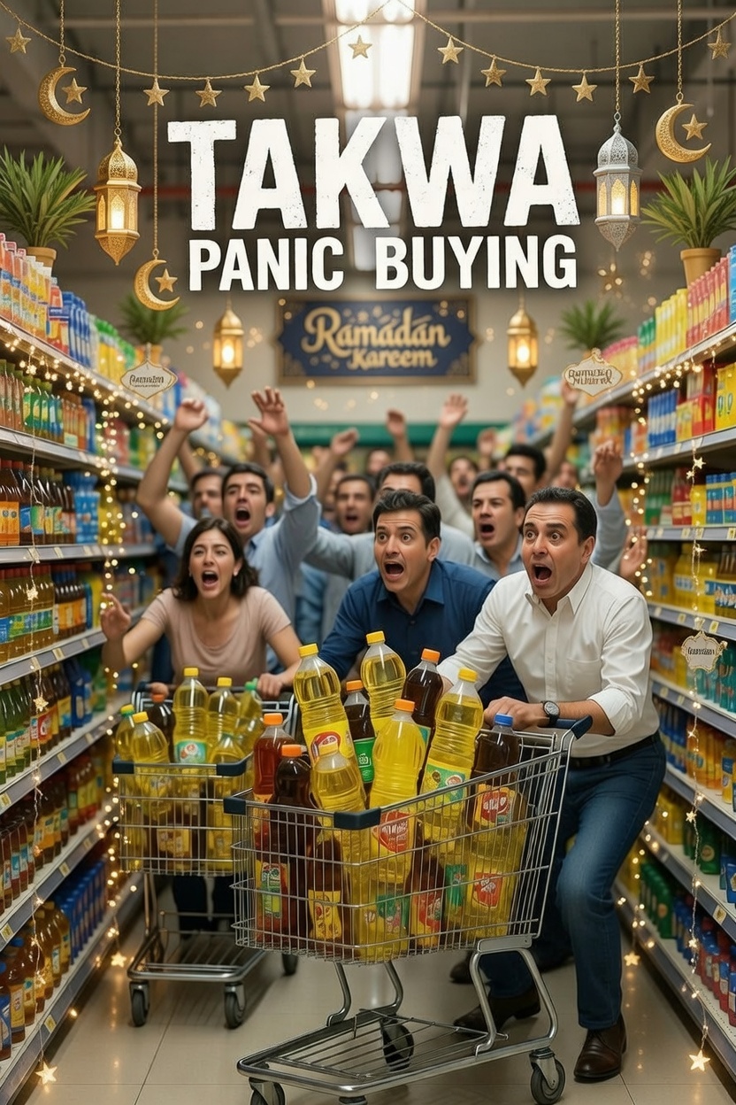 Jika kita pergi ke supermarket atau pasar tradisional selama dua hari terakhir, kita tidak akan melihat wajah-wajah yang sedang bersiap untuk tenang dan kontemplatif. Yang kita lihat adalah medan perang. Kereta belanja yang saling sikut, antrean kasir yang mengular layaknya pembagian BLT, dan rak-rak minyak goreng serta sirup yang mendadak ludes seolah-olah besok pagi matahari tidak akan terbit lagi.