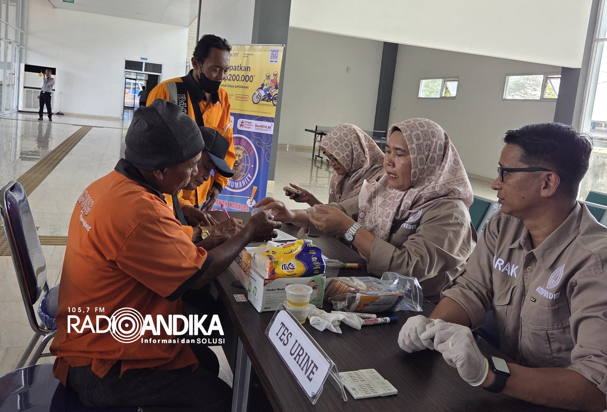 Selain kendaraan, Dishub juga melakukan pemeriksaan kesehatan bagi para awak bus. Pemeriksaan mencakup pemeriksaan darah, kadar gula, kolesterol, asam urat, serta tes Napza. Hasilnya, ditemukan 11 awak bus dengan tekanan darah tinggi, 3 orang memiliki kolesterol tinggi, 3 orang gula darah tinggi, 1 orang mengalami gangguan mata (minus), dan seluruhnya dinyatakan negatif Napza. (rif)