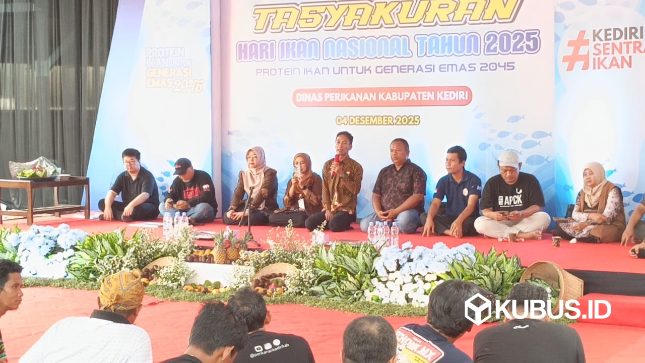 Kediri (KUBUS.ID) – ​Pemerintah Kabupaten Kediri melalui Dinas Pertanian menyelenggarakan acara tasyakuran dalam rangka peringatan Hari Ikan Nasional (Harkannas) tahun 2025. Mengusung tema nasional, “Protein Ikan untuk Generasi Emas 2045”, acara ini digelar untuk meningkatkan kesadaran masyarakat akan pentingnya konsumsi ikan sebagai sumber protein utama bagi tumbuh kembang anak dan pembentukan Sumber Daya Manusia (SDM) unggul.