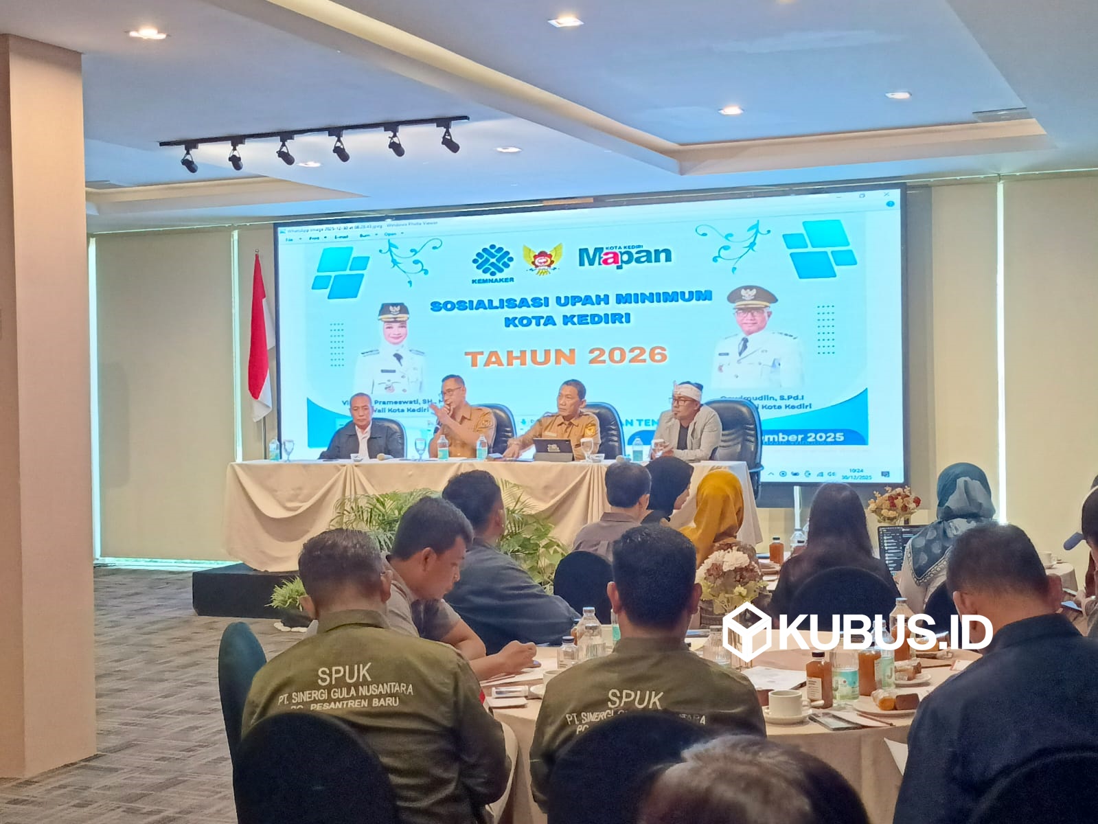 Kediri (KUBUS.ID) – Pemerintah Kota Kediri melalui Dinas Koperasi dan UMTK melakukan sosialisasi besaran Upah Minimum Kota atau UMK tahun 2026. Dalam ketetapan terbaru, UMK Kota Kediri mengalami kenaikan sebesar 170 ribu rupiah lebih dibanding tahun 2025.