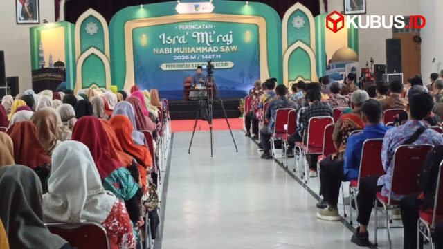 KEDIRI, (KUBUS.ID) – Pemerintah Kabupaten Kediri memanfaatkan peringatan Isra Miraj Nabi Muhammad SAW 1447 H sebagai momentum penguatan integritas dan disiplin aparatur sipil negara (ASN). Kegiatan digelar di Gedung Bhagawanta Bhari dan diikuti ratusan pegawai di lingkungan Pemkab Kediri, Kamis (22/1/2026).