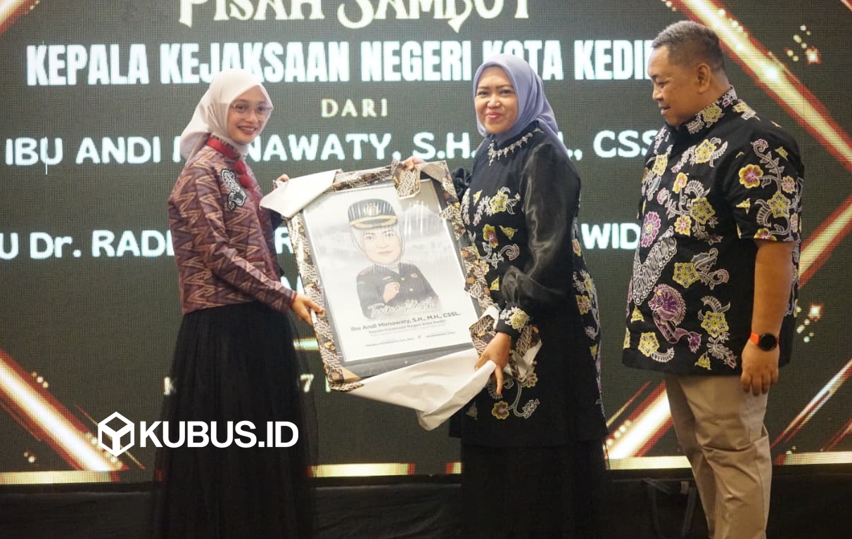KUBUS.ID – Wali Kota Kediri Vinanda Prameswati menghadiri Pisah Sambut Kepala Kejaksaan Negeri Kota Kediri yang digelar di Tegowangi Ballroom Grand Surya, Jumat (07/11/2025) malam. Kini Kejaksaan Negeri Kota Kediri dinahkodai oleh Rr.Theresia Tri Widorini. Sementara Kepala Kejaksaan Negeri Kota Kediri periode 2023-2025 Andi Mirnawaty mengemban amanah baru sebagai Kepala Bagian Keuangan pada Sekretariat Badan Pendidikan dan Pelatihan Kejaksaan Republik Indonesia.
