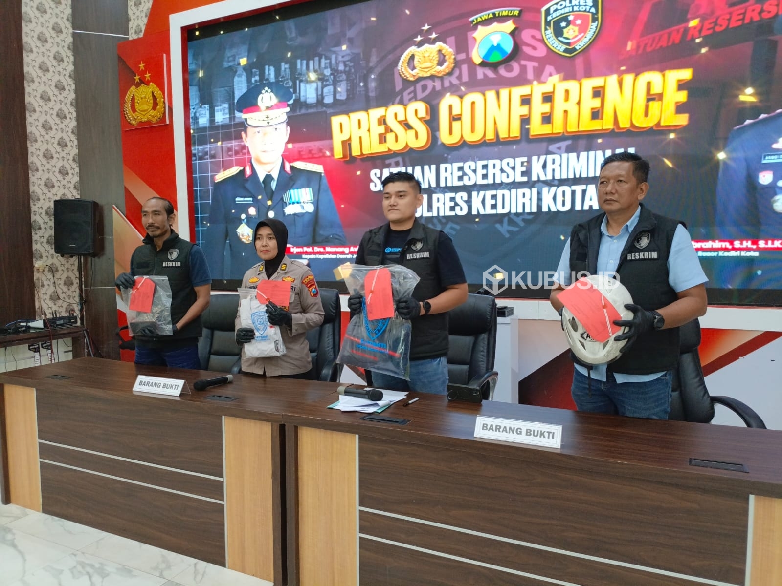Dalam penangkapan ini, Satreskrim Polres Kediri Kota turut menyita sejumlah barang bukti yang digunakan pelaku saat melancarkan aksinya, antara lain, 1 Unit sepeda motor Yamaha Mio Nopol AG 2284 BX. Helm, Jaket, dan celana pendek. Kemudian Tas selempang, HP, dan sepasang sandal.