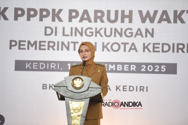 KEDIRI (KUBUS.ID) – Wali Kota Kediri Vinanda Prameswati menyerahkan secara simbolis Surat Keputusan (SK) Pegawai Pemerintah dengan Perjanjian Kerja (PPPK) Paruh Waktu di lingkungan Pemerintah Kota Kediri, Selasa (16/12/2025). Penyerahan tersebut berlangsung di GOR Jayabaya Kota Kediri.