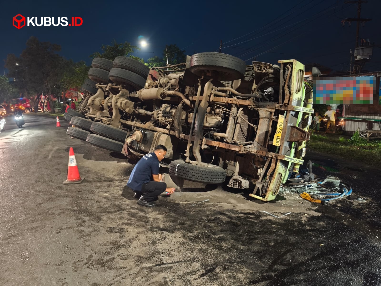 Kecelakaan melibatkan Yamaha Jupiter yang dikendarai Iwan Susilo (47) warga Desa Jabaran, Balongbendo, dengan truk kontainer Hino yang dikemudikan Hendrik Santoso (53) warga Surabaya. Truk diduga oleng setelah ban kiri menabrak pembatas jalan, sehingga menimpa motor yang melintas dari arah sama.